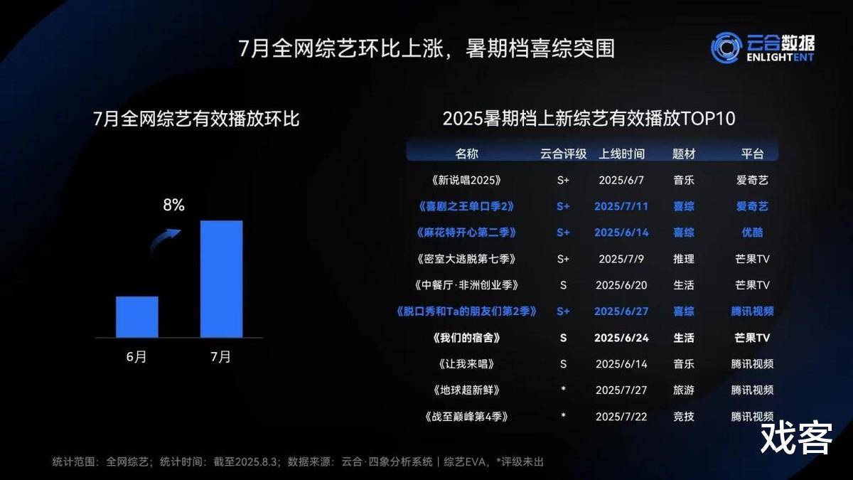 作为今夏最受瞩目的音乐综艺,《新说唱2025》开播便势如破竹。首播24小时内,爱奇艺热度突破9531,创下系列新高;仅13天便获“云合S级综艺”认证,并在暑期档综艺榜中强势登顶。整个播出周期内,节目累计斩获11560 条全网热搜热榜。九年来,爱奇艺说唱IP持续进化,而这一季无疑在巅峰之上再攀高峰,用一首首热曲、一个个舞台和一次次文化碰撞,为所有rapper与观众奉献了一个热血燃情的夏天。