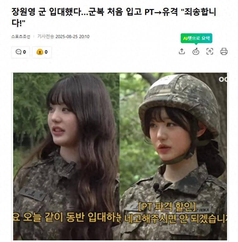 门一开,身着军装的张元英突然现身,笑着问道:“和我一起陪同入伍没关系吧?”这句玩笑话把综艺效果直接拉到临界点,让人瞬间被提起的笑意和好奇心带走。其实,这并非真的要去服兵役,而是韩媒报道中的假日特辑第三弹,来自YouTube频道《全改者》的一场“陪同入伍”体验。