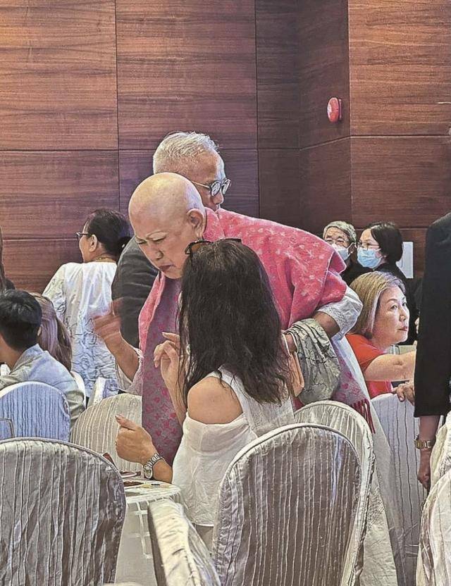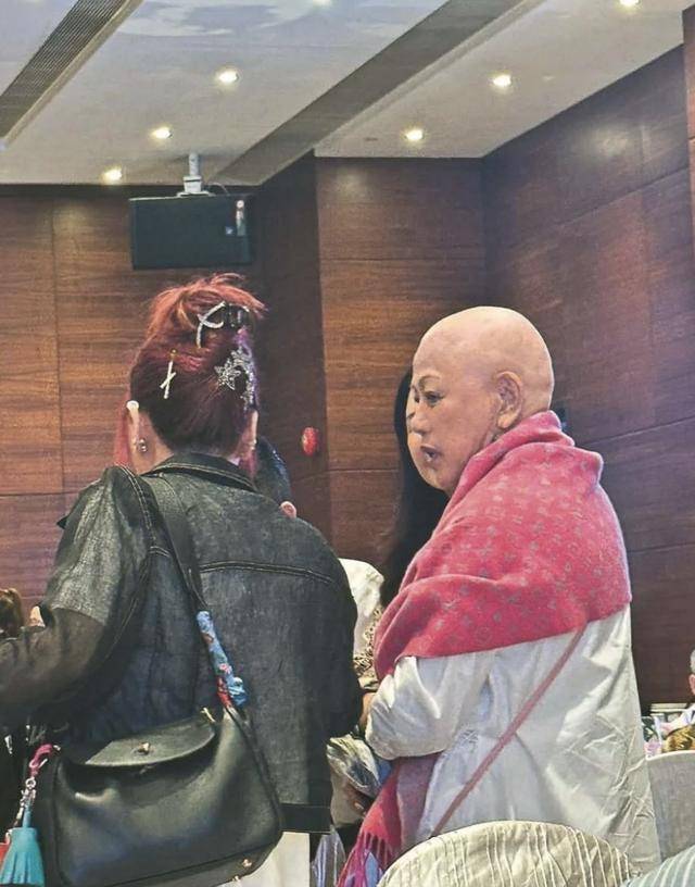 有网民目击在一个宴会上,佘诗曼的母亲也有现身,她全程都表现的很兴奋,看来是见到一班老友后有些激动,佘诗曼的母亲穿着白色的连体长衫,肩膀上还有个红色的披肩,她一开始还戴着头巾,不过后来很快就拿掉了头巾,露出了她的光头。