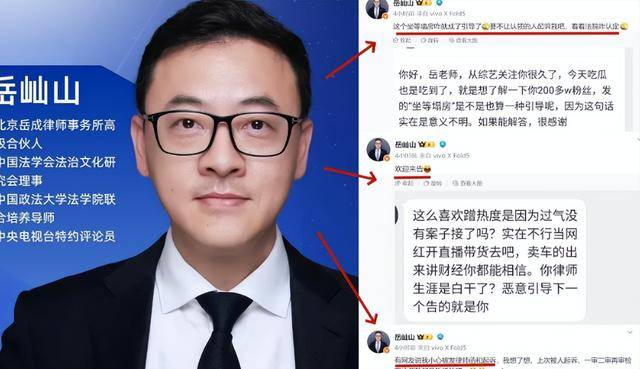 法律专家岳屾山,一位央视特约评论员、岳飞后裔,仅仅因为在社交媒体上发了“坐等塌房”四个字,便被卷入漩涡。