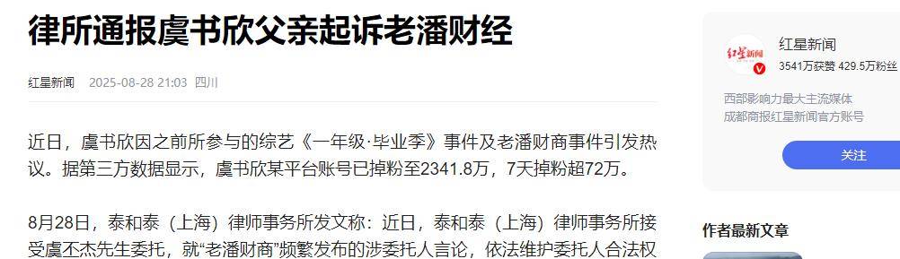 红星新闻《律所通报虞书欣父亲起诉老潘财经》