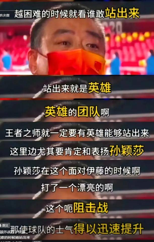 刘国梁当时的眼泪,更让这个故事有了更深的分量。在孙颖莎战胜伊藤美诚的半决赛后,他含泪对记者说:“越困难的时候,就看谁能站出来,敢站出来的就是英雄。”那一刻,他称赞孙颖莎打出了一场漂亮的阻击战,守住了国乒的尊严。要知道,当时的混双比赛中,国乒首次在奥运舞台失手,许昕和刘诗雯输给水谷隼与伊藤美诚,痛失首金,这给整个队伍带来了前所未有的打击。正是在这种局面下,孙颖莎挺身而出,成为最耀眼的那道光。