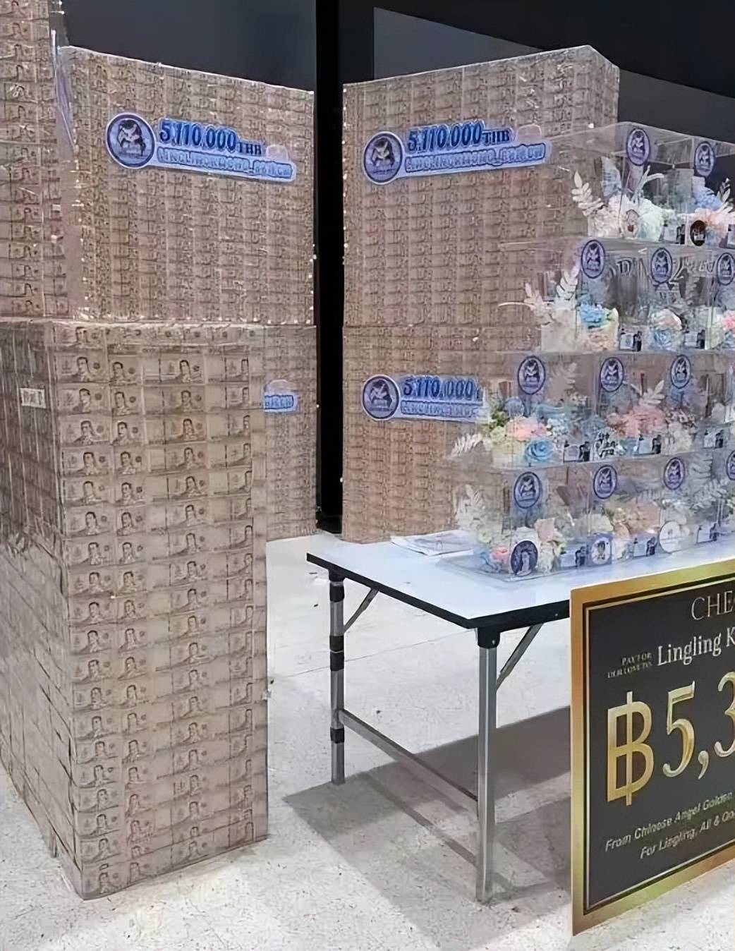 粉丝得知后很心疼,于是在邝玲玲2025年过生日之际,粉丝集体募捐了400万现金和400克黄金,分批多次带到泰国,在生日会现场堆起“金山银山”送给偶像。