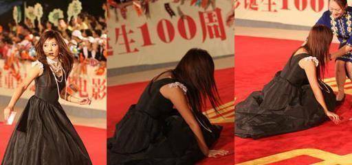那之后的她似乎掌握了流量密码,常常以各种低端炒作的方式冲上热搜,比如在红毯上跌倒、演唱会表演时忽然走光等。
