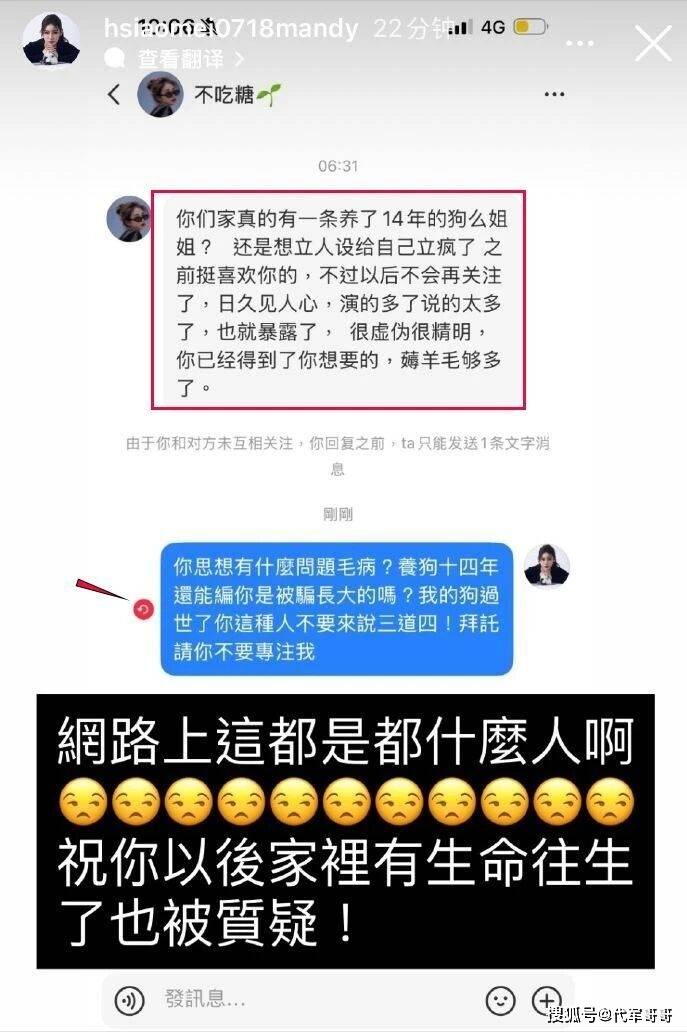 然而,本是一场寄托哀思的葬礼,却引发了网友的强烈质疑与抨击。“狗生病了还要直播,这就是所谓的爱狗人士?”“太会做戏了,给自己立人设,连狗血馒头都要吃。” 类似的恶评如潮水般涌来。甚至有极端网友,专门跑到马筱梅的私信中辱骂她,质疑她养狗的真实性,指责她虚伪、精明,认为她是在利用狗狗打造人设。面对这些无端的指责,马筱梅气愤不已,直接回怼:“你思想又什么问题和毛病?” 可当她想要进一步理论时,却发现已被对方拉黑。无奈之下,她只能将对方的私信内容截图,挂在自己的动态中,并表示:以后家里人去世也被人质疑 。