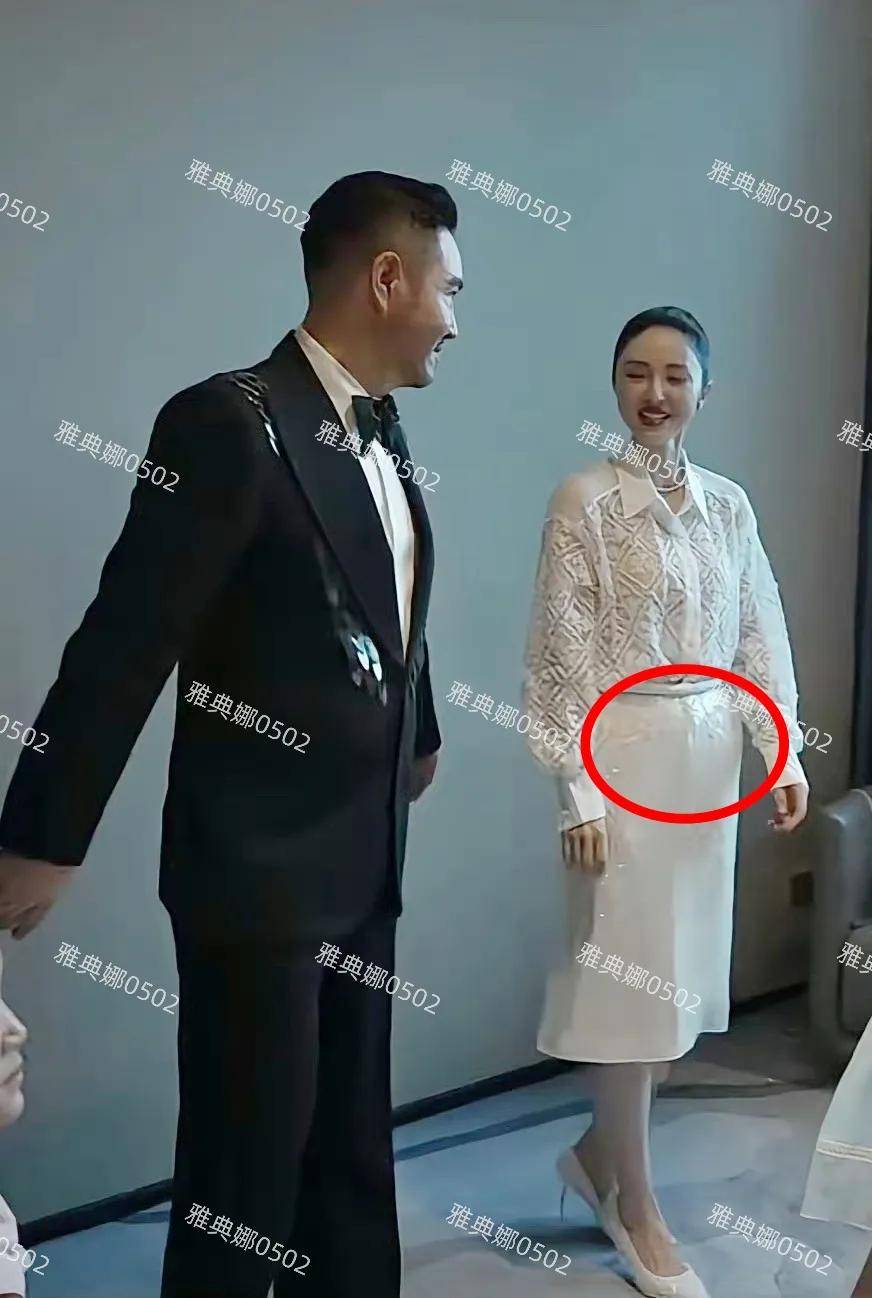 在这两张合影中,董璇穿了白色蕾丝衬衫和白色半身裙,脚上穿了同色系的白色鞋子,一身纯白色的打扮十分干净清新,但引人注目的是董璇的小腹凸起的很明显,有人猜新婚燕尔的她是不是怀孕了,也有人说董璇单纯就是年纪大代谢变慢身材发福了,46岁的年纪小腹不平坦有多余的脂肪很正常。