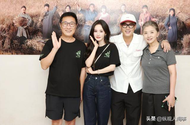 而且能注意到的是,合照中所有人几乎穿的都是便装,只有杨幂和林永健穿着剧宣的短袖来。