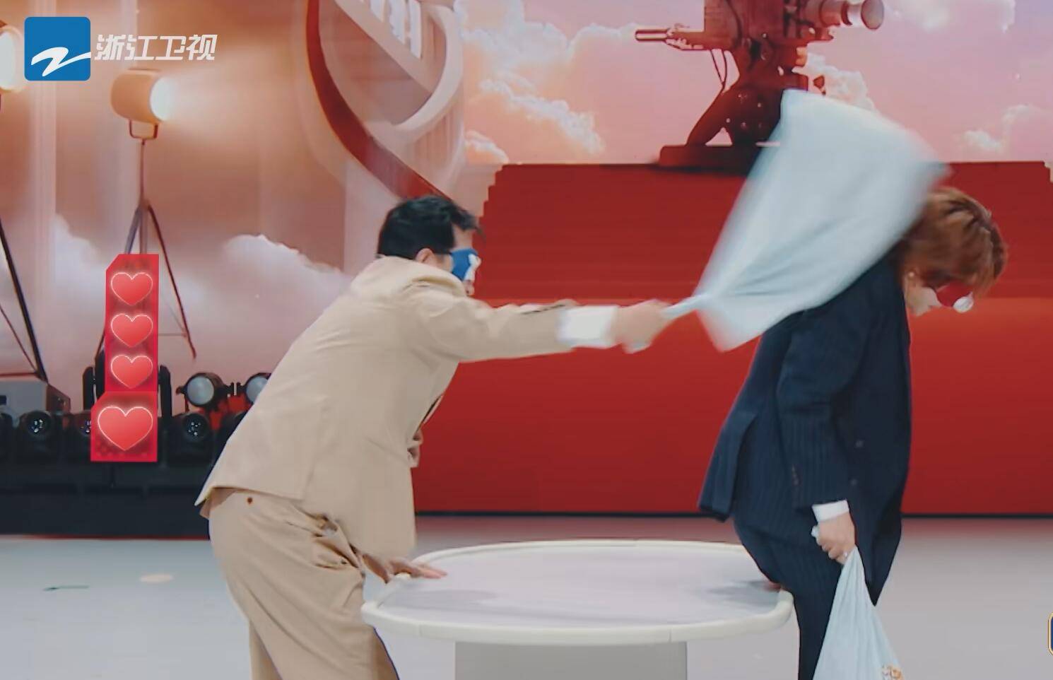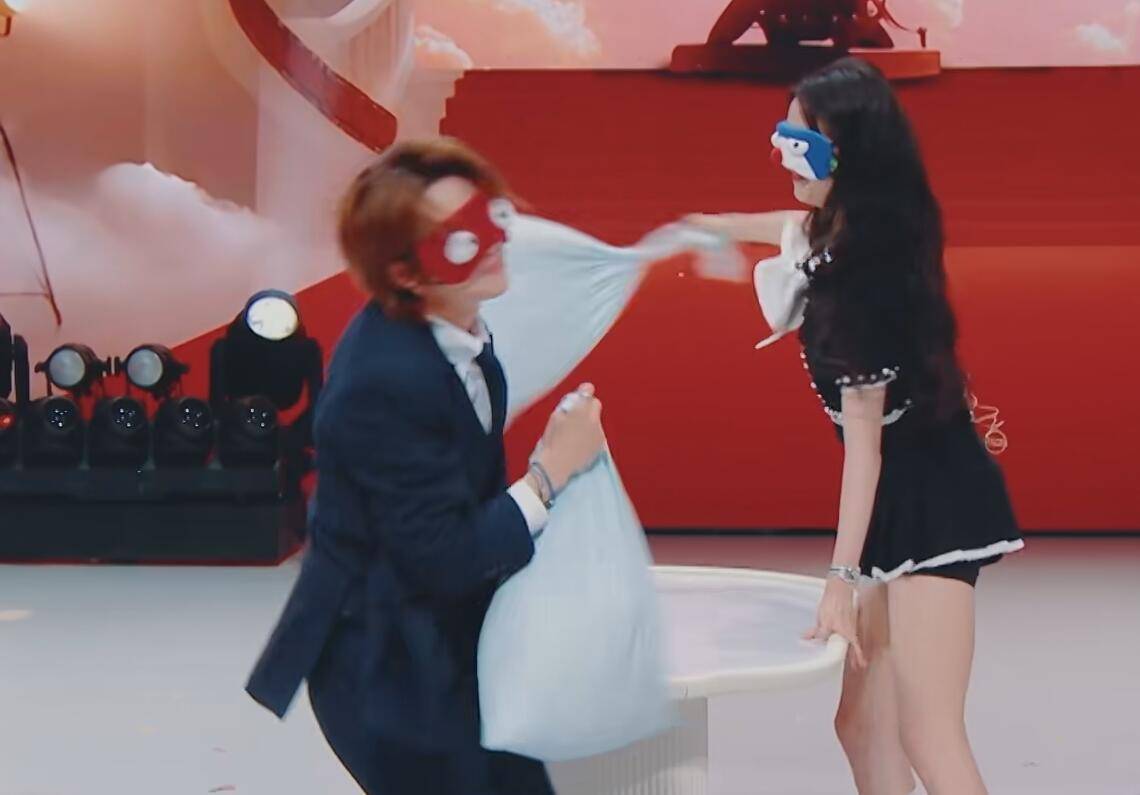 在这期节目中有一个“击中爽点”的游戏,也可以称之为“枕头大战”。