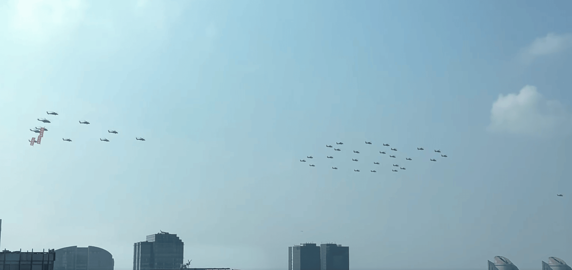直升机在空中飞行的画面让人看得很激动。