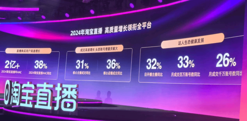 今年3月的淘宝直播年度大会上,淘宝官方宣布2024年淘宝直播年活跃买家数超2亿,核心主播成交同比增长31%,核心店播成交同比增长36%。2025年,淘宝将继续搭建“超级主播-垂类主播-品牌店播”三级梯队,定向孵化5000个品质新主播。