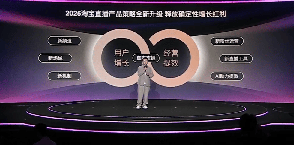 早在去年3月,时任淘宝直播一把手的程道放就在淘宝直播年度大会立下军令状,称未来一年GMV同比增长80%,用户规模和月成交破百万主播数量同比翻倍,然而不到3个月,程道放在朋友圈官宣离任,转身拥抱AIGC;今年3月,淘宝直播年度大会上又立下新目标,淘宝直播宣布新增110亿投入,2025年成交增速超50%、未来两年成交翻倍、用户量翻倍。