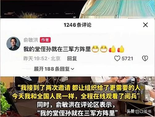 评论区里他还补充了一句,说自己的堂侄孙就在三军方阵里。