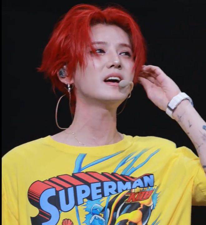 鹿晗顶着一头红发狼尾,像刚放学的中学生,踩着滑板车就冲出来。