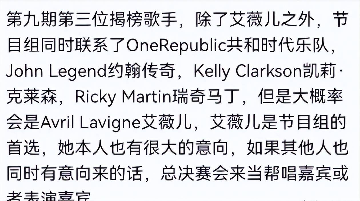 总的来说,艾薇儿的加盟让这档音乐综艺节目备受期待。