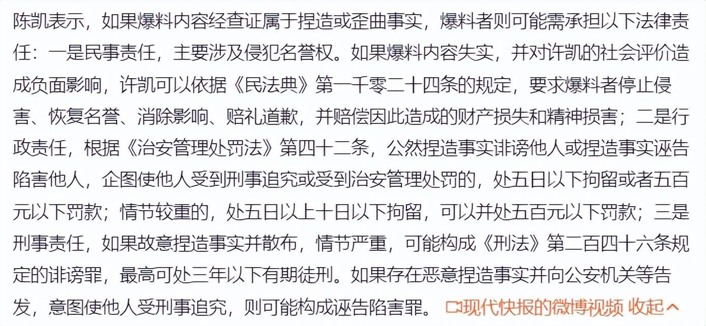 当然,如果爆料是假的,爆料者也要承担责任,现在就看许凯方面的回应了。