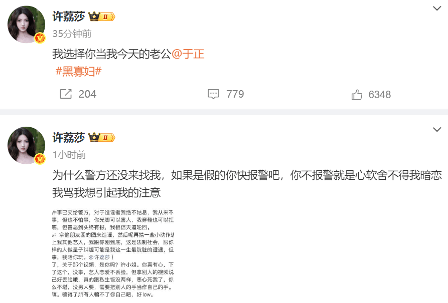 目前除了狗仔爆料,许荔莎也不断喊话于正回应,直言如果是假的话,于正应该报警来抓她,自己等着呢。由此可见,许荔莎胸有成竹并不害怕于正许凯,也更加说明了这事情的真实性。