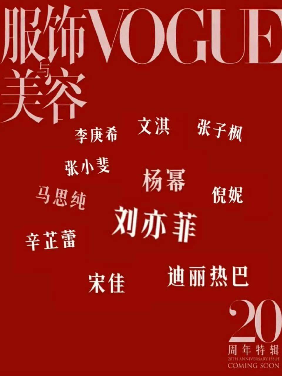 这不,今年Vogue中国版二十周年群封,就因为出场次序的安排,再度站上了风口浪尖。