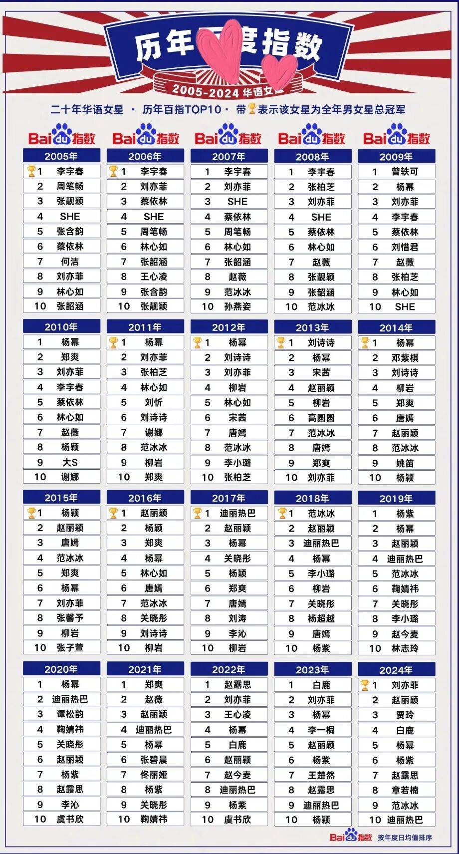 幂式穿搭至今仍是电商流量密码,“杨幂同款”这四个字就等于秒空预定。商业影响力这一块,她始终稳坐头部梯队。