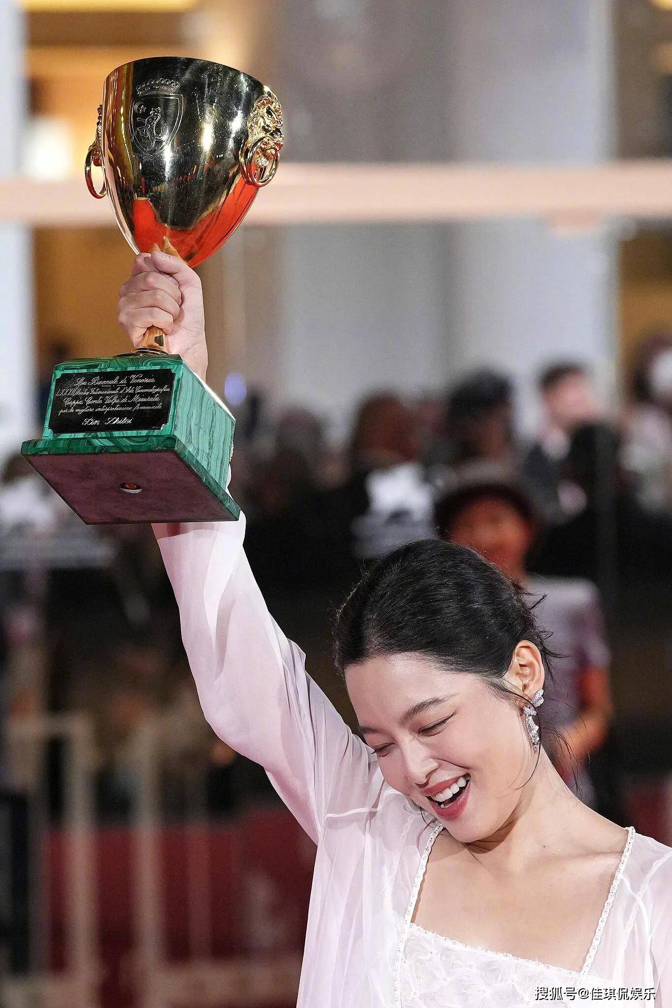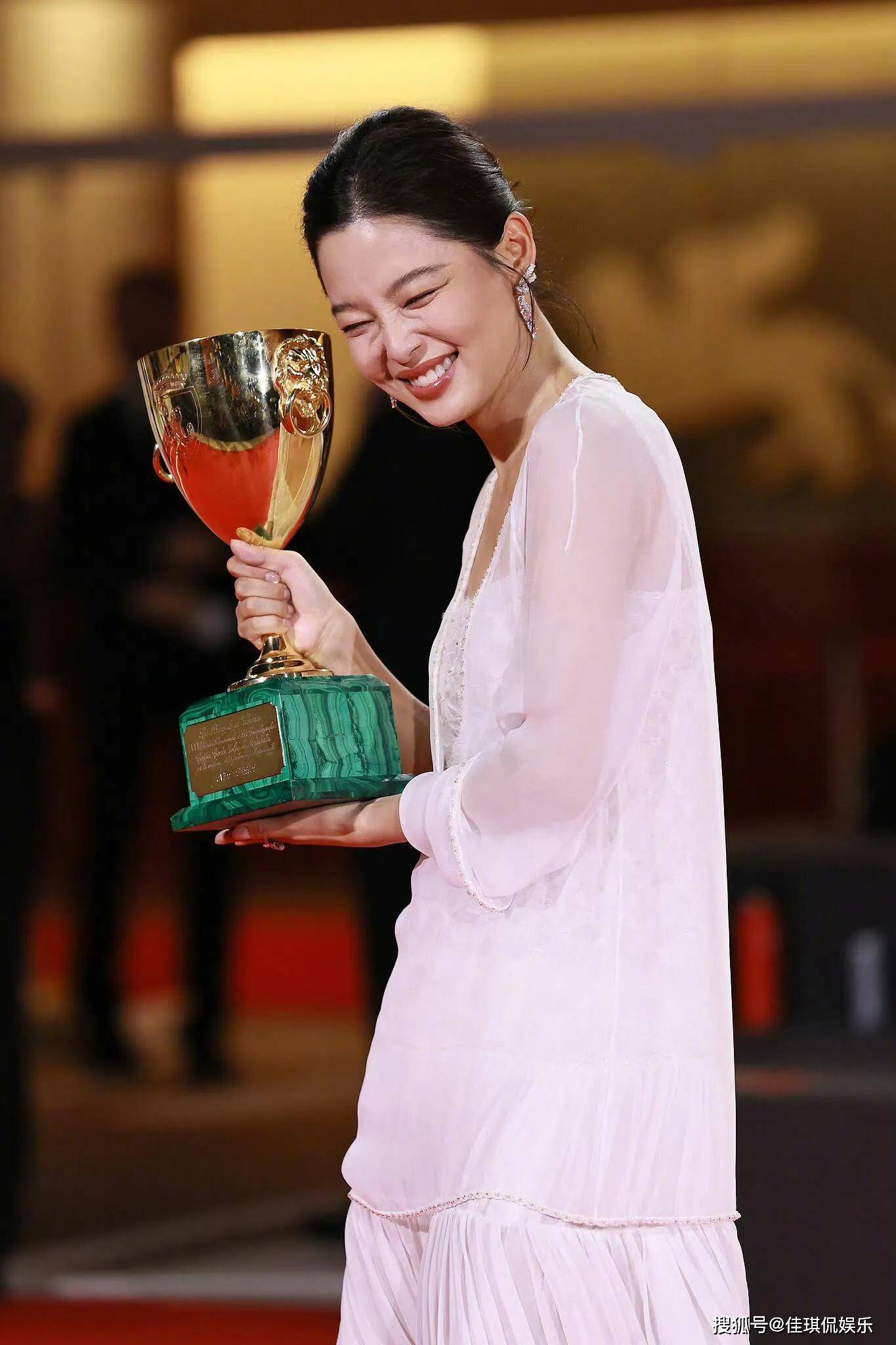 辛芷蕾捧着奖杯向全场观众展示,威尼斯电影节最佳女主角是我们漂亮的辛芷蕾,这一刻真的很骄傲。赵涛坐在评委席上骄傲的看着她,这是她力挺的女演员。赵涛每次做评委都能“撕”到奖,对她很钦佩,她是真的在努力为中国电影人争取机会,赵涛做的很棒。