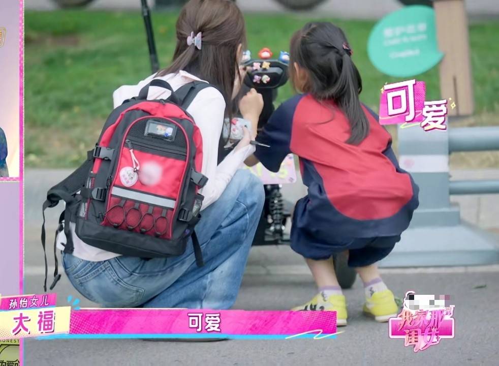 当然,孙怡也有细腻敏感的一面。比如,在装饰小车车牌时,她原本想写“大福”两个字,但考虑到女儿在学校可能会因为同学的议论而感到尴尬,最终只写上了她的英文名字。在做出这个决定后,她也坦诚地告知了女儿,并耐心倾听女儿的想法。