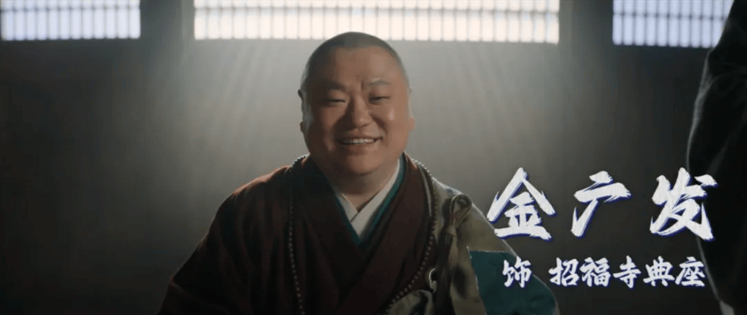 李善德在招福寺密会右相杨国忠,影片中为两人牵线搭桥,看起来颇有城府的寺庙典座便由金广发出演。