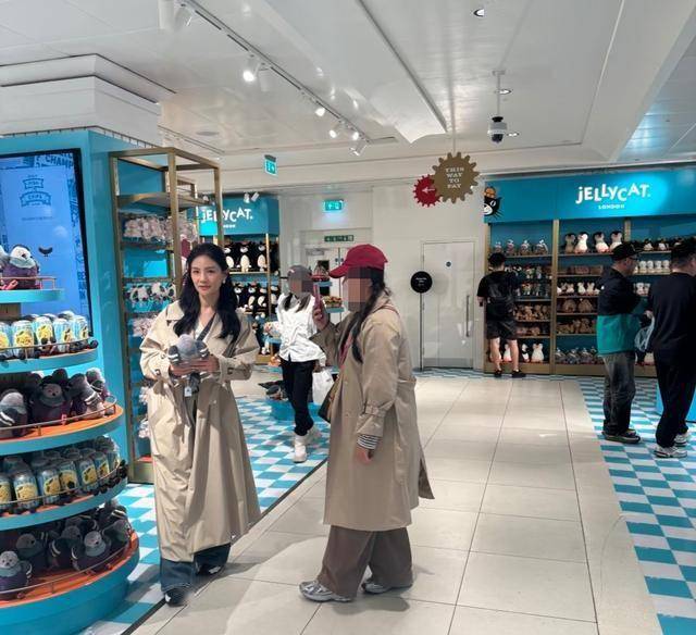 值得注意的是,在她身旁跟着一个女士,头戴一顶黑色鸭舌帽,穿衣风格一模一样,都是同色长款风衣搭配阔腿裤、运动鞋。胡可在挑选公仔时,这位女士用手机记录下这一快乐时刻。