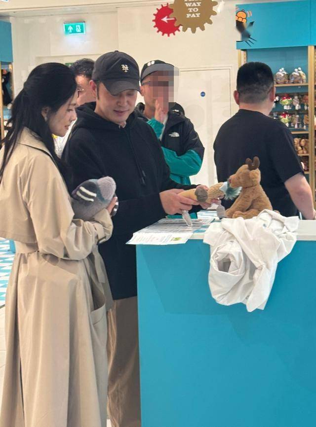 胡可挑选了几个可爱的公仔,还有白色上衣。准备结账时,沙溢出现了,他头戴一顶黑色帽子,身穿黑色休闲外套,搭配深卡其色裤子,手里拿起一个公仔,眼睛却盯着别处看,跟胡可有说有笑。看得出来,两人感情很好。