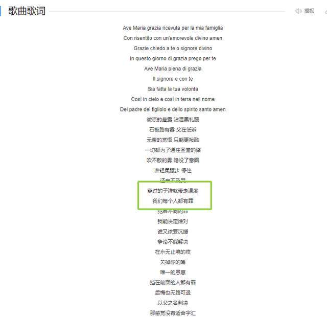 在这首歌曲中,有一句话显得很突兀,那就是“穿过的子弹就带走温度,我们每个人都有罪,犯着不同的罪。”