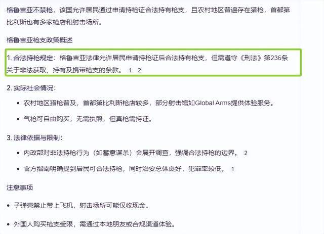 公开资料显示,格鲁吉亚这个国家并不禁枪,该国允许居民通过申请持枪证合法持有枪支,且农村地区普遍存在猎枪,首都第比利斯也有多家枪店和射击场所。