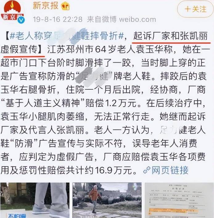 2019年的防滑鞋代言事件将争议推向高潮。江苏62岁的王姓消费者因穿着该品牌防滑鞋摔伤致骨折,医疗费用高达4万余元。事后调查发现产品防滑系数仅为国家标准的一半,属于三无产品。虽然涉事企业被处以50万元罚款并召回问题产品,但张凯丽"为劣质产品站台"的形象已难以挽回。