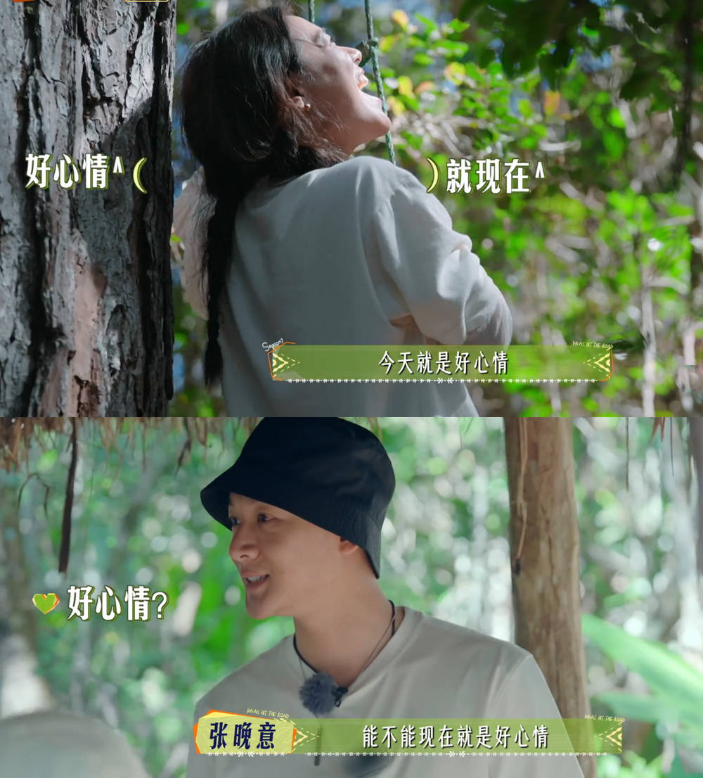 另一对画风截然不同。敏感细腻的马思纯遇上情绪稳定的张晚意,像冰可乐碰上薄荷糖,意外炸出清爽气泡。森林里马思纯喊"第二天开始要好心情",张晚意偏要拆台:"现在就不能开心吗?";机场疯狂投喂被误会清库存,他理直气壮:"就是想给你吃好的"。
