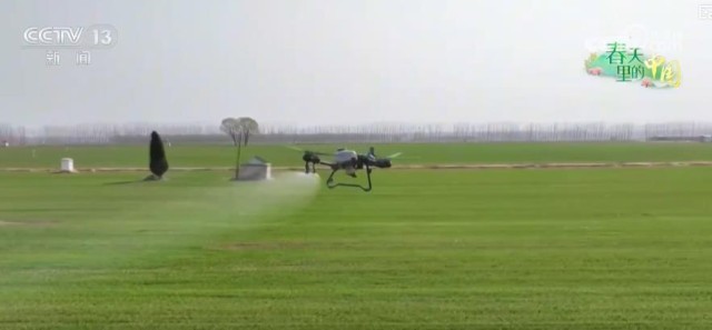 而在另一处麦田里,植保无人机正在喷洒防治病虫害的药物。飞手们操纵控制器圈画出相应范围,植保无人机便能自动设计路线,精准高效完成喷洒任务,1天就能喷洒700多亩麦田。