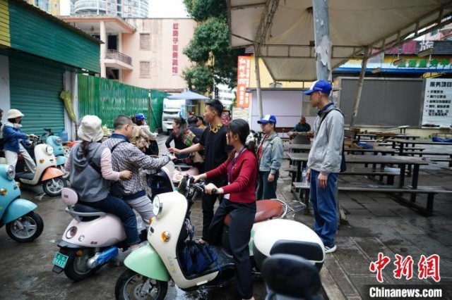 3月16日,云南省红河州河口县街头,数位越南游客骑着租来的电动车游玩。中新社记者 刘冉阳 摄