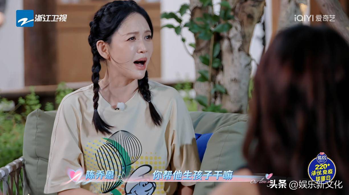 后来,陈紫函说到自己3年做了12次试管,天天扎针,但是都没有怀孕成功,两个人经常在马路上抱着哭,大家都对陈紫函报以同情的目光。后来,陈紫函说到自己和老公回新加坡,都是老公和经纪人在前面,自己像个马仔一样跟在后面。陈乔恩突然一脸不可置信,大声地说:“你帮他生孩子干嘛呀!”人家陈紫函前面说了,自己喜欢孩子,陈乔恩却说陈紫函帮他生孩子,听的陈紫函都无言以对了。