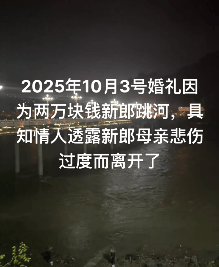 陕西新郎婚礼前1小时跳河,现场画面曝光,网友透露女方临时加价
