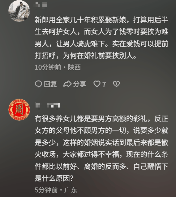 对普通人家庭来说,几年积蓄全砸在一场婚礼和彩礼上,已经够艰难的了。如果婚礼当天还要再被临时加码,这种落差感足以把人逼到崩溃。有人看了这场悲剧,只说了一句,“这不是婚礼,是压垮最后一根稻草。”