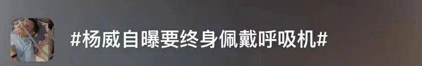 2023年10月12日,奥运体操冠军杨威称他最近开始打鼾,医生表示是他的呼吸道出现问题,吸不进气,睡觉时需要终身佩戴呼吸机。