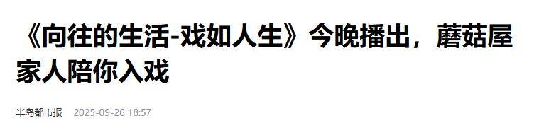 半岛都市报|《向往的生活-戏如人生》今晚播出,蘑菇屋家人陪你入戏.2025