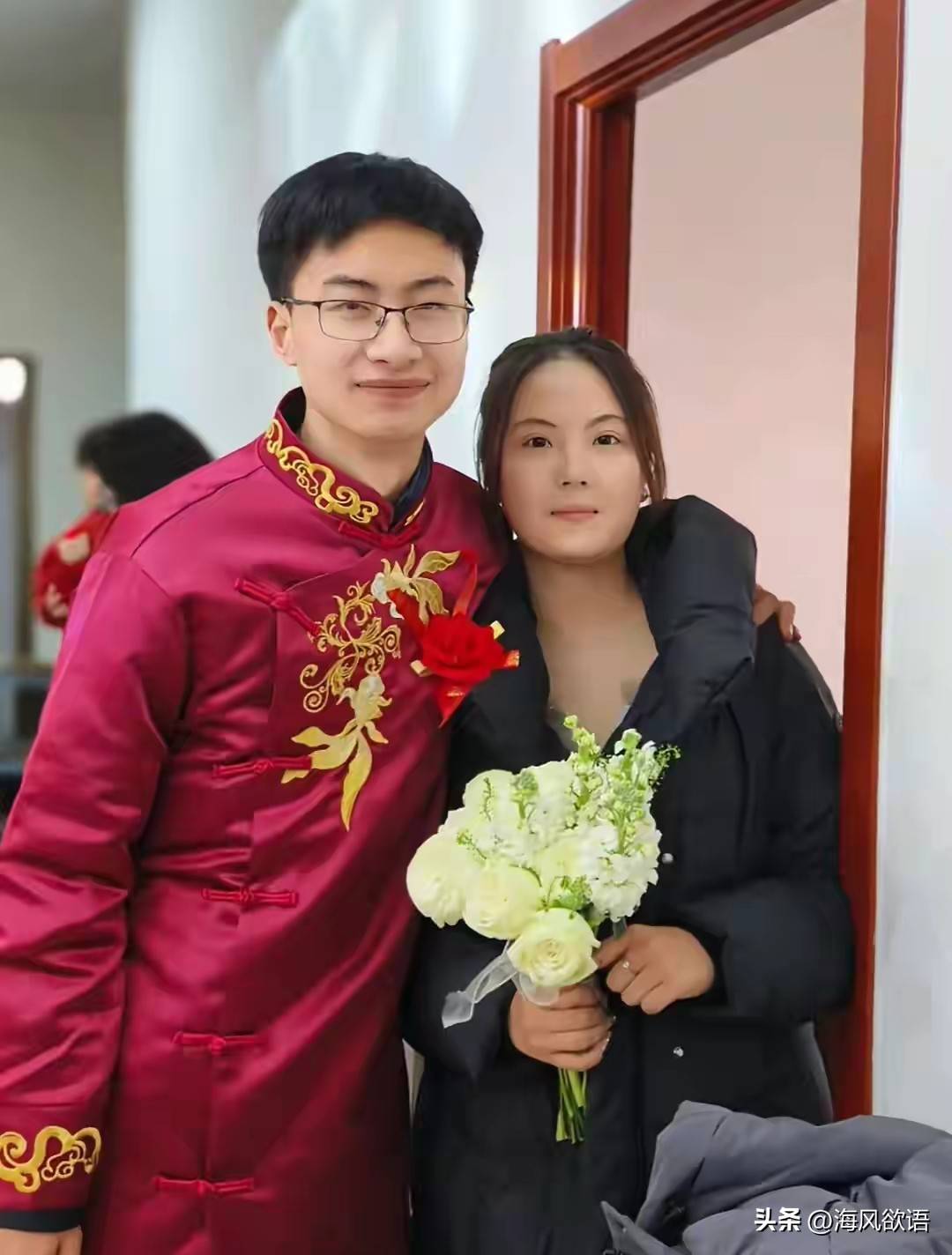 女方晒出的照片里,两人穿着白衬衫,在照相馆布景前笑得一脸灿烂,IP地址还显示在河北老家,这可不就像极了回老家办手续的模样。