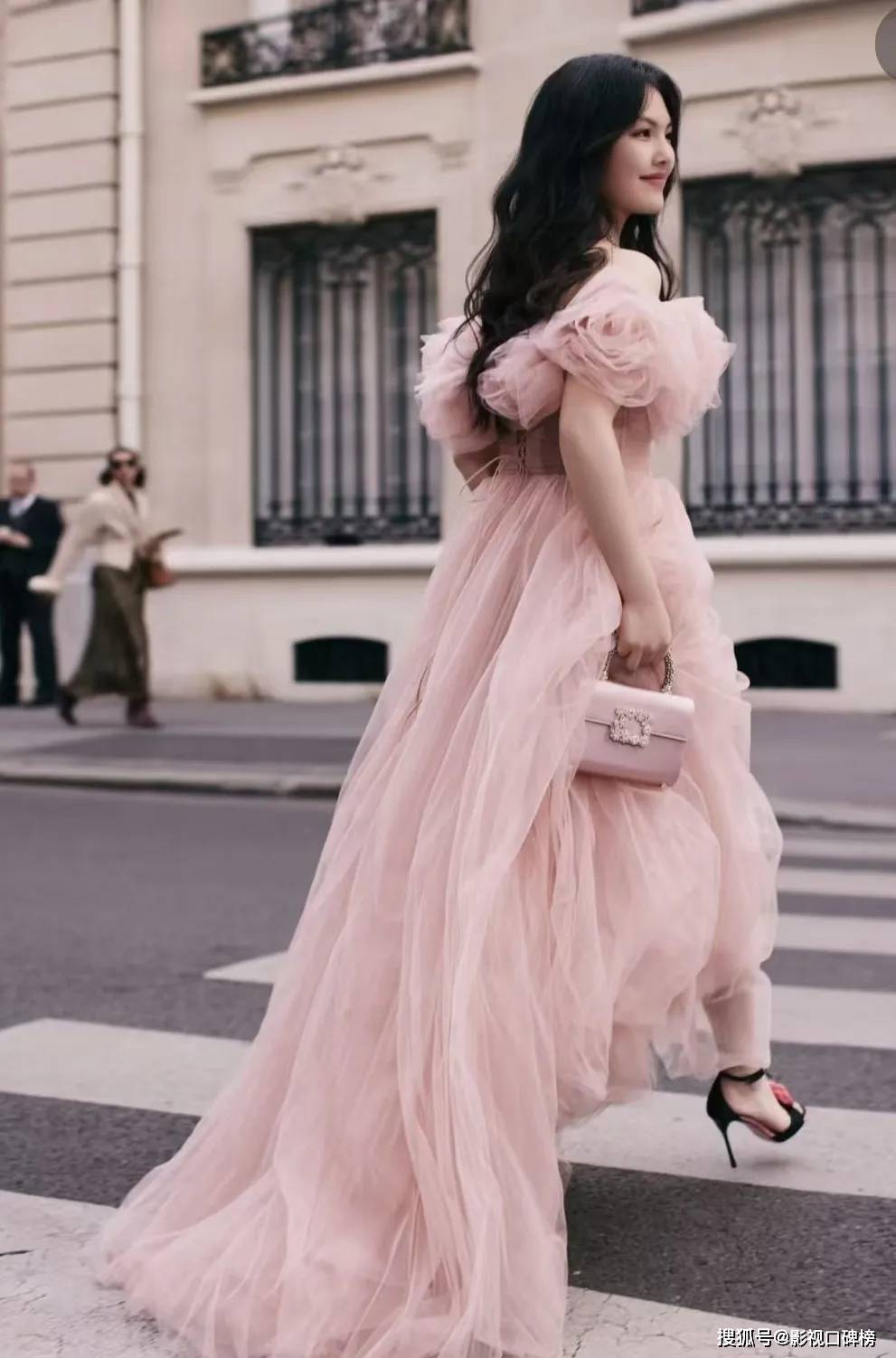 王诗龄留着一头波浪长卷发,穿着粉色玫瑰花抹胸礼裙,脚上踩着高跟凉鞋。她脖子上戴着项链,手上戴着手链,拎着一个粉色的包包。王诗龄的穿搭简直像一个小公主,事实上她从小就是这样。