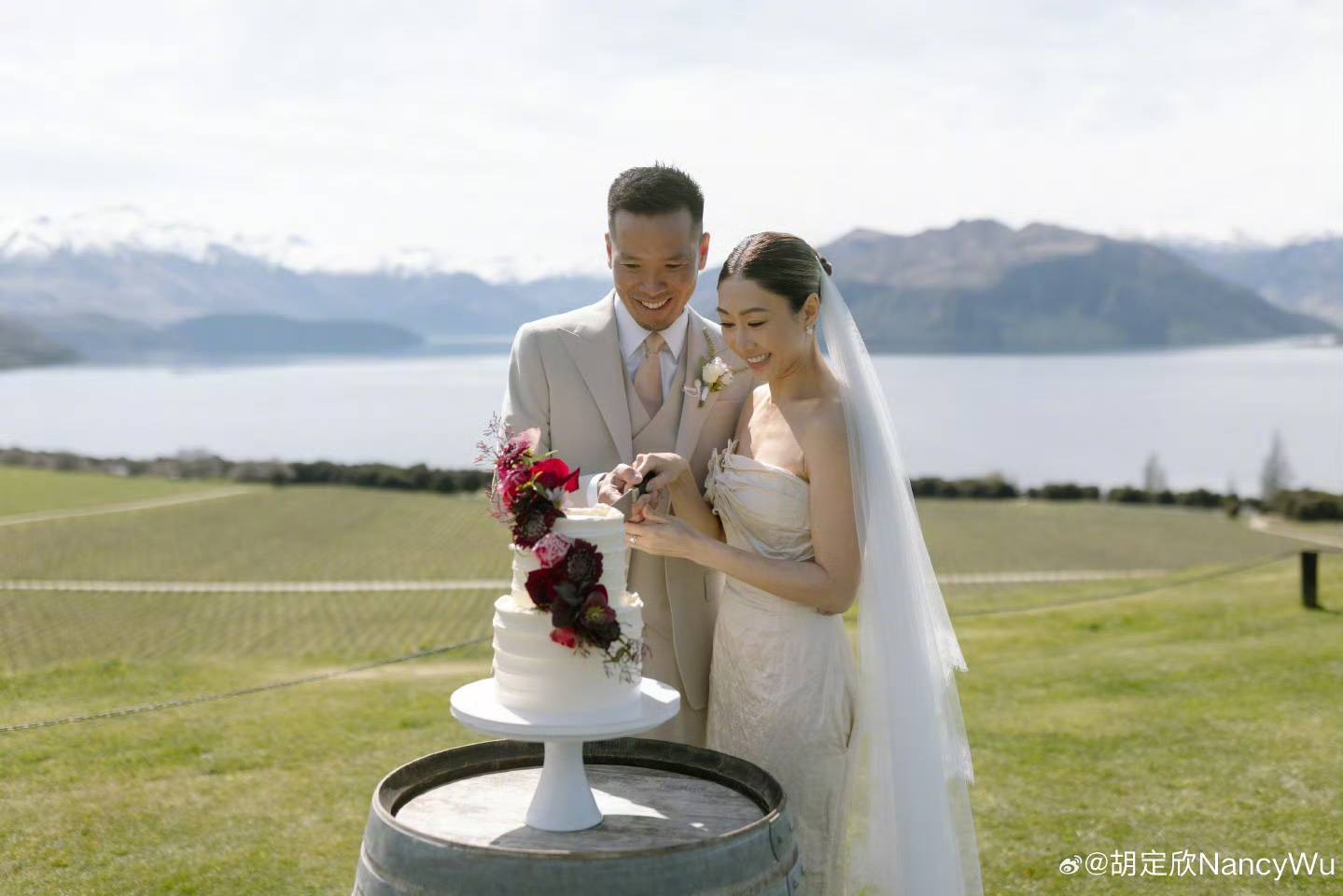 【祝福新人,期待更多美好】胡定欣和陈健华的婚礼在新西兰的草坪上举行,画面温馨又浪漫。胡定欣穿着露肩白纱,和陈健华牵手对望、切蛋糕,每一个瞬间都充满了甜蜜。他们的爱情故事让我们相信,每个人都能找到属于自己的幸福。让我们一起祝福胡定欣和陈健华,愿他们的婚姻生活幸福美满,也期待更多美好的爱情故事发生。