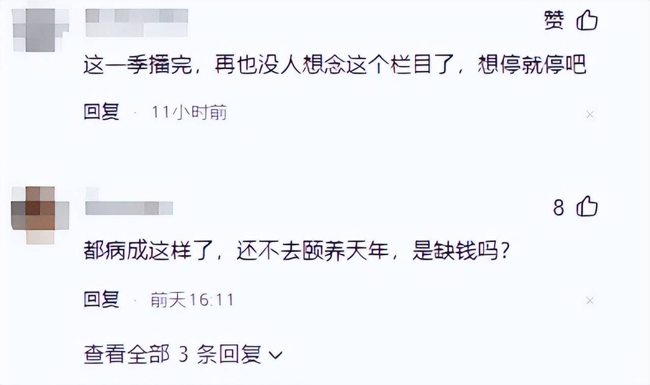 不过也有网友认为,这个节目早就失去了原来的样子,这一季播完,还是结束算了,还能留下点美好的回忆。
