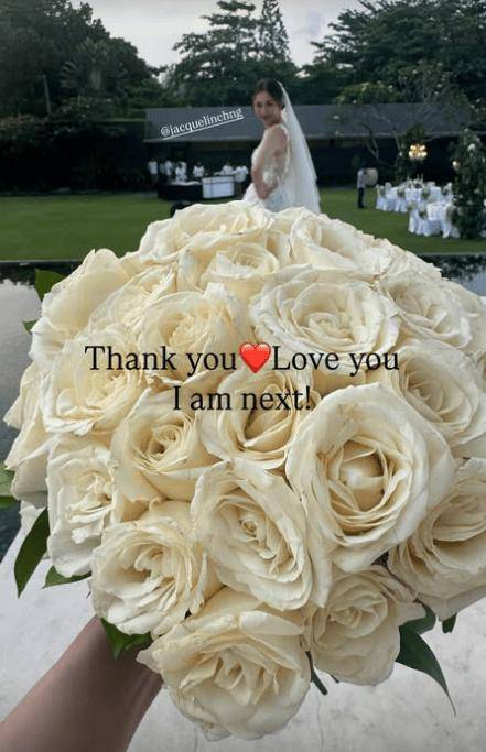 王晶女儿王海榛还在社交网晒出接到花球的画面,庄思敏则回应:“下一个就到你啦”。