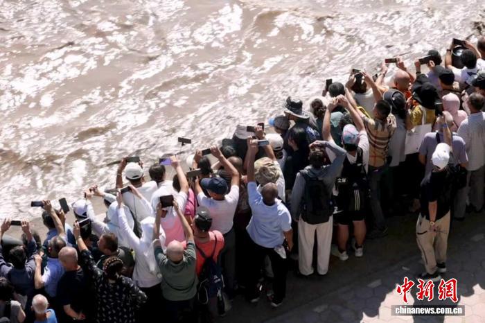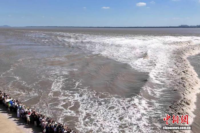 中新网嘉兴10月9日电(胡丰盛 孙杨洋)10月9日,农历八月十八,被誉为“天下第一潮”的钱塘江大潮如期而至,数万中外游客齐聚浙江海宁盐官观潮点,共赏这一自然奇观。