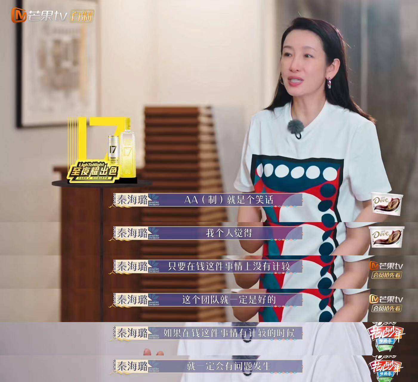 但秦海璐却持不同观点,她认为AA制在出游时显得有些小家子气。作为团队中的大姐大,秦海璐觉得出来玩最重要的是开心,如果因为钱而产生争执,那就得不偿失了。
