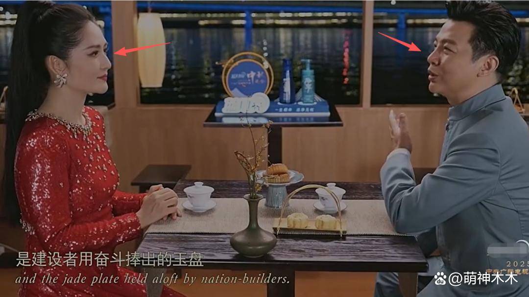 或许因首次担当央视中秋晚会主持,又恰逢故乡四川德阳,这份紧张难免流露。她说话时频繁的小动作和习惯性的点头略显刻意,有时语气搭配的肢体动作稍显僵硬和忙乱,整体体现出与央视严谨氛围的差异。