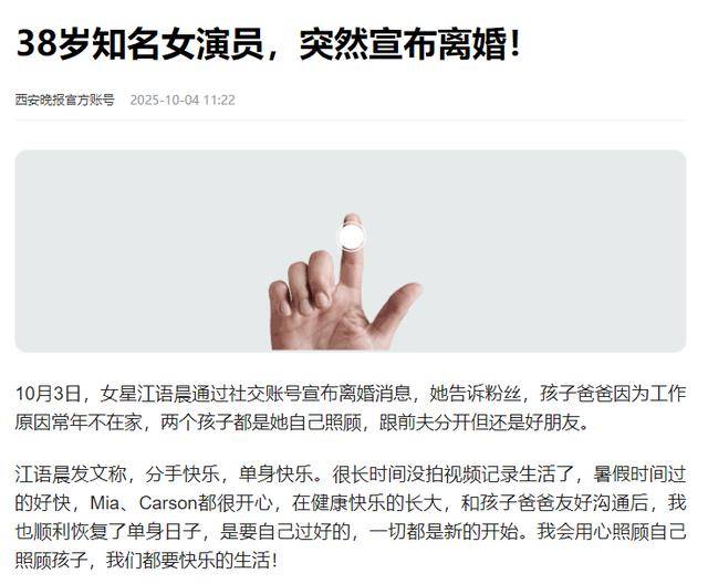 传闻也就此销声匿迹,如今江语晨官宣离婚恢复单身。