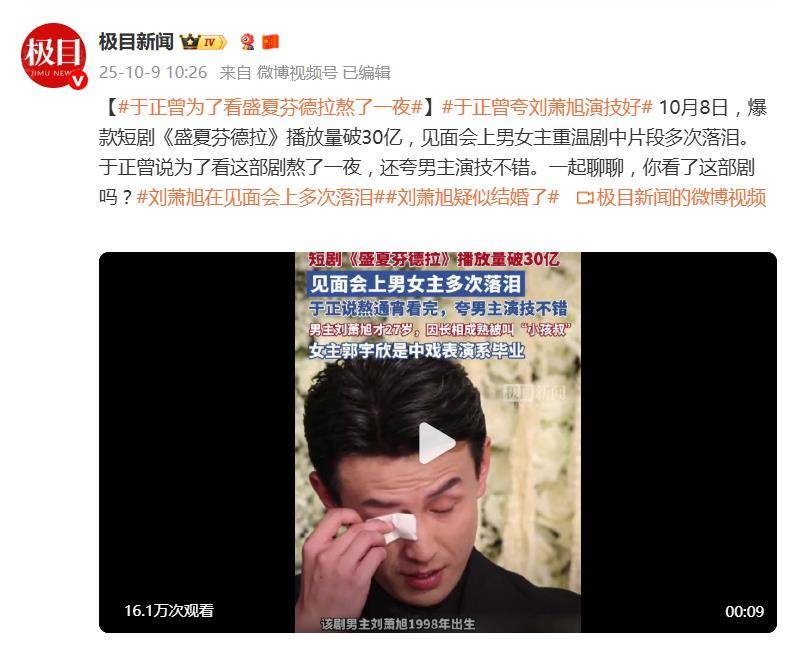 向来挑剔的于正公开表示“为追剧熬了一夜”,并专门肯定刘萧旭的演技。更实际的是,已有知名制片人向刘萧旭、郭宇欣递出电影剧本,用行动认可了他们的表演潜力。