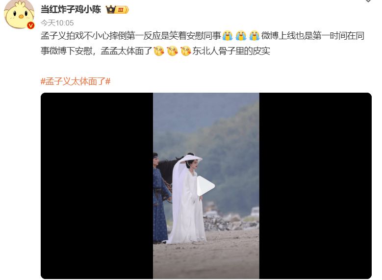 斯文好奇点进去看了下,发现这事儿的起因是孟姐最近在剧组拍戏受伤了,而她本人之后的一系列反应,可以说是都在给自己的路人缘上大分。