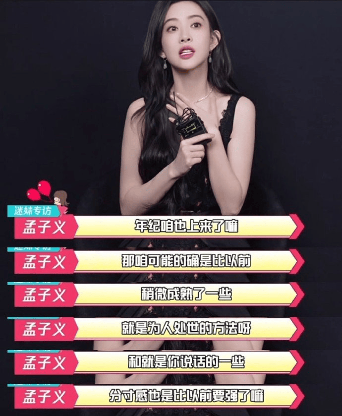 有了作品当底气,很多纷争、谣言都会不攻自破,虽然孟子义自己的说法是她比较晚熟,年纪上来了感觉成熟了,“为人处世方法和说话分寸感比以前要强了”。
